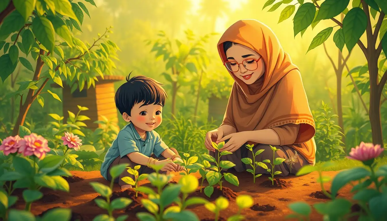 Bimo mengerutkan kening. “Tapi, Bu, aku tidak pernah menanam sayur sebelumnya. Aku takut gagal,” jawab Bimo dengan nada lesu. Ibu Ratna tersenyum lembut. “Tidak apa-apa, Nak. Ibu akan bantu. Yang penting, kamu berani mencoba. Ingat, gotong royong itu penting. Kita harus saling membantu,”