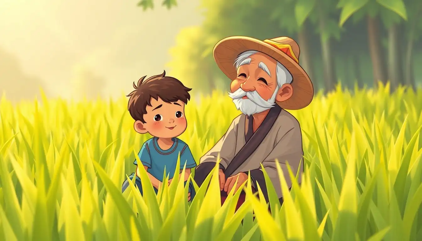 “Padi di sawahku banyak yang mati, Bima. Sepertinya panen kali ini tidak akan bagus,” jawab Pak Tani dengan lesu. Bima merasa iba melihat Pak Tani. Ia ingin membantu, tapi apa yang bisa dilakukan anak kecil sepertinya?