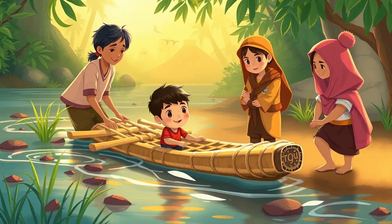 Di sebuah desa yang asri, di tepi sungai yang jernih, hiduplah seorang anak laki-laki bernama Banyu. Banyu dikenal sebagai anak yang cerdas dan lincah, namun ia seringkali merasa ragu pada dirinya sendiri. Suatu hari, desa mereka akan mengadakan lomba membuat perahu dari bambu. Semua warga bersemangat, termasuk Pak Karta, seorang tukang kayu yang ahli.