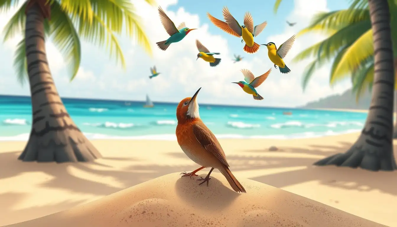 Di sebuah pantai tropis yang indah, hiduplah seekor burung Jalak kecil bernama Cempaka. Pantai itu selalu ramai dengan burung-burung lain yang riang bermain, terbang, dan mencari makan. Cempaka merasa sedikit sedih karena ia merasa tersisih. Burung-burung lain seperti Kutilang dan Pipit selalu berkelompok, tertawa bersama, dan terbang ke tempat-tempat yang tinggi. Cempaka hanya bisa melihat dari bawah, merasa kecil dan tidak penting.