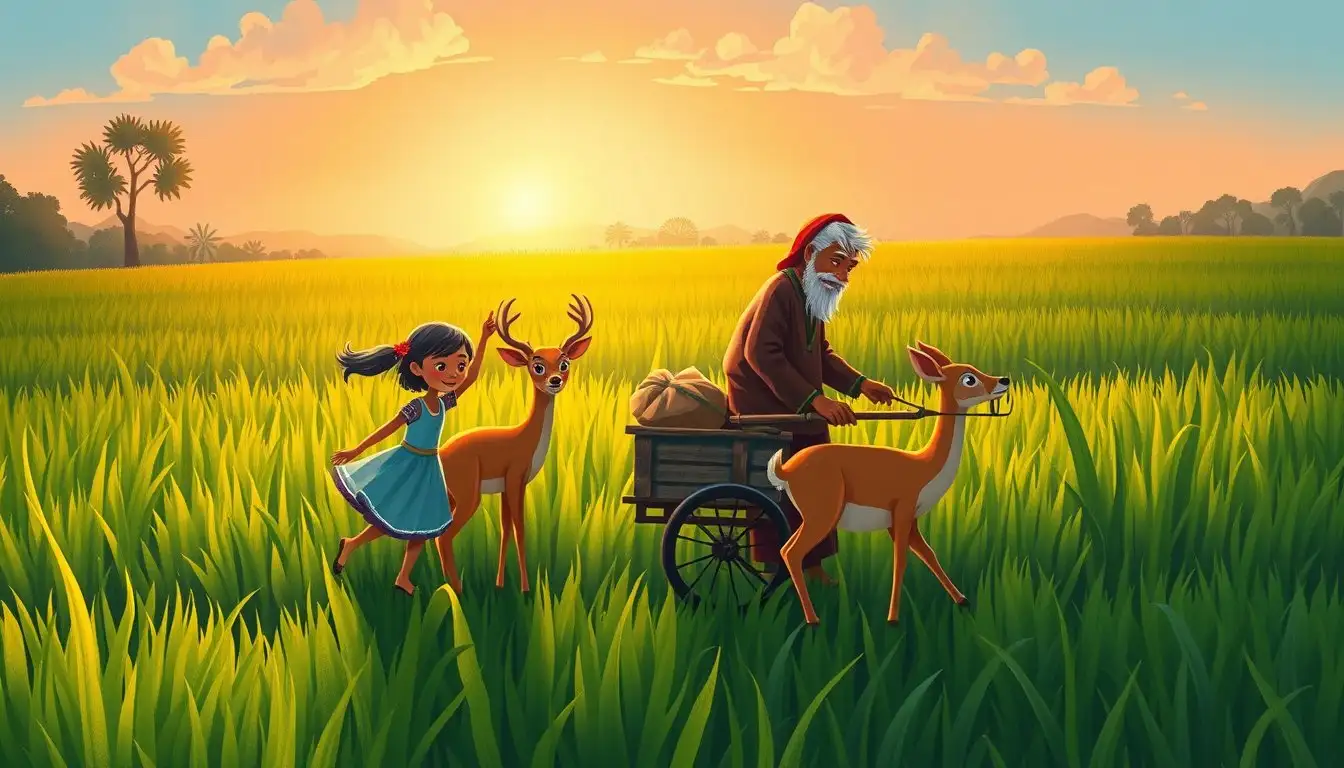 Tak lama, Kancil datang menghampiri. Ia mendengar cerita Rani dan langsung menuju ke sawah. “Jangan khawatir, Rani! Aku akan bantu!” seru Kancil dengan semangat.